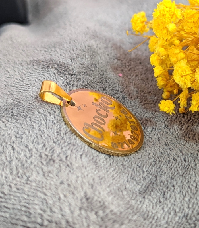 ellee’s trusted pet tags are just perfect! The gold color is rich and customizable. Highly recommended!